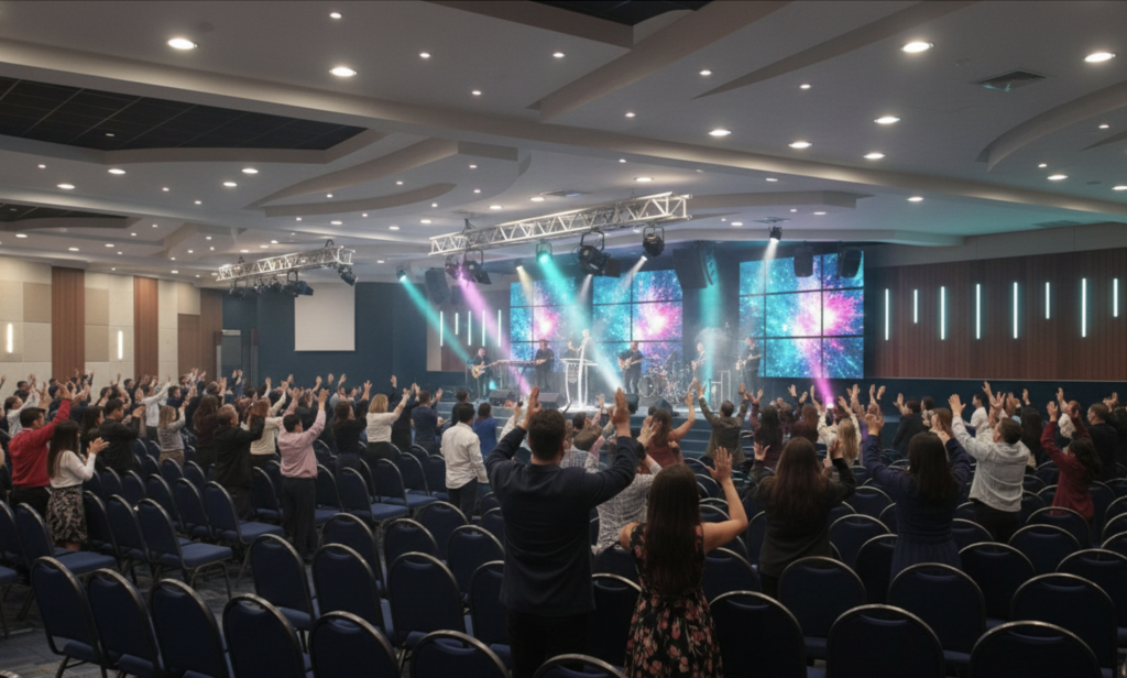 Diseño arquitectónico y constructivo de un auditorio de usos múltiples con capacidad para 600 personas. El proyecto se enfocó en entregar un espacio versátil y funcional, adaptable a actividades congregacionales, formativas y comunitarias.