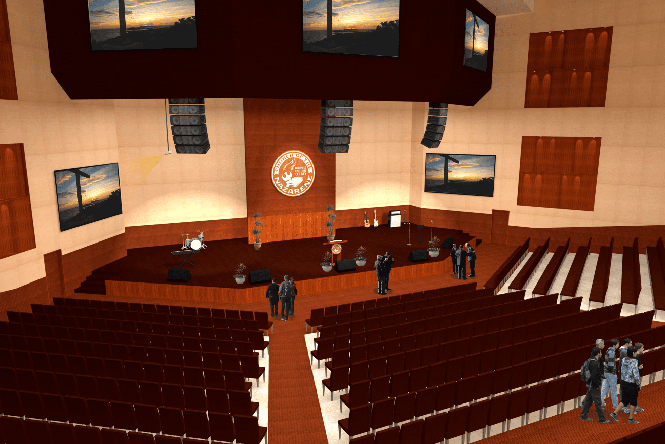 Auditorium Fraternidad Cristiana de Guatemala - Proyecto en desarrollo - Vista hacia el escenario desde altura